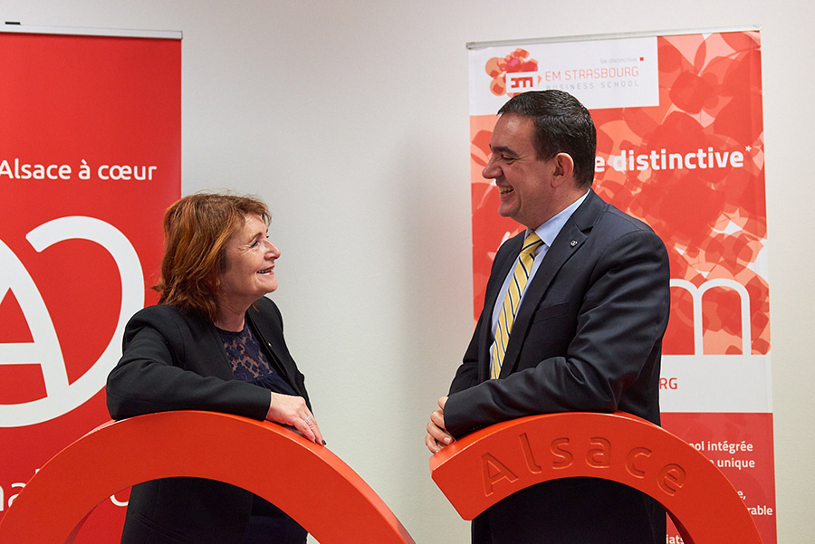Cette convention prend donc la forme d’une caisse de résonnance à double sens. D’abord en permettant au territoire alsacien de bénéficier de la force de frappe de l’EM Strasbourg à l’international, avec ses étudiants et ses 18.000 diplômés dispersés en France et dans le monde entier pour renforcer son image et sa notoriété. Ensuite en permettant à l’école de bénéficier elle-même de la force du réseau de la marque Alsace sur son territoire d’origine pour mieux s’y faire connaître et y être identifiée comme un atout majeur de son attractivité. Un accord gagnant-gagnant pour les deux structures qui, au-delà d’elles-mêmes, sert l’Alsace dans son ensemble.